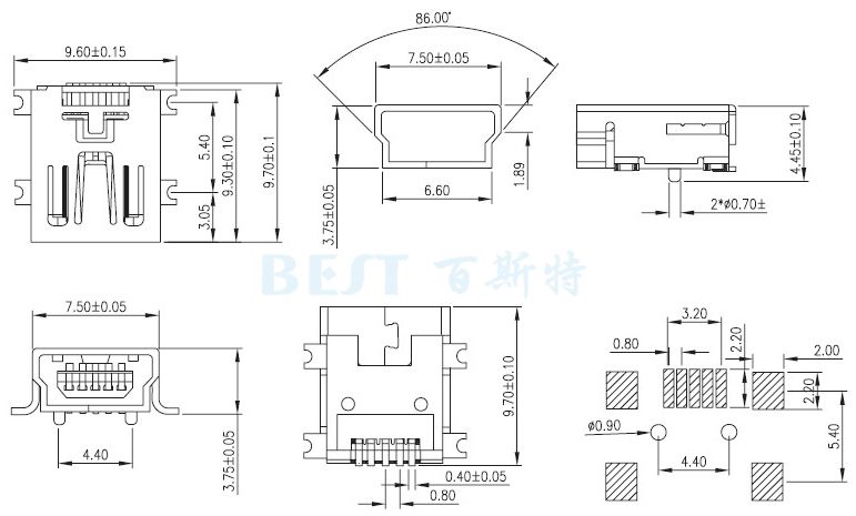USB插座USB-4T-03大量使用于移動硬盤、計算機、平板、手機、投影儀等產品上面。